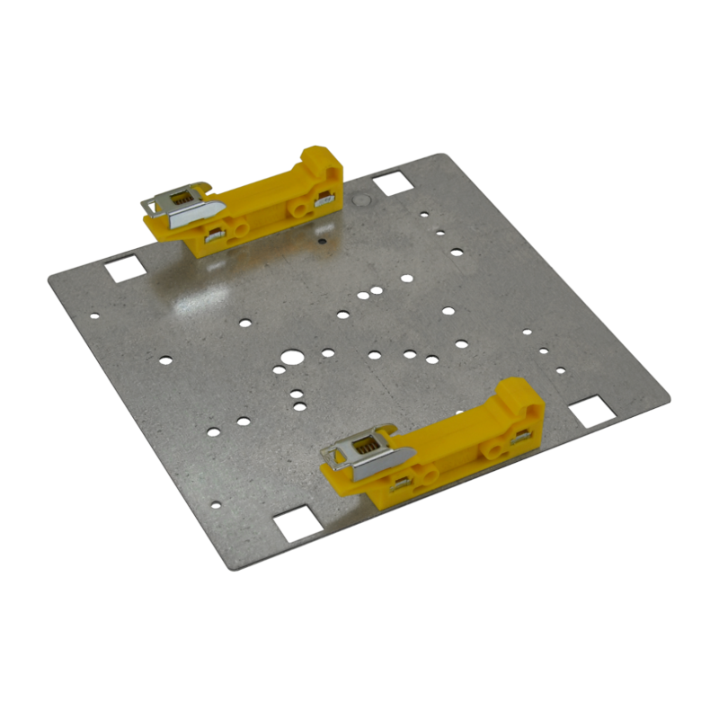 Le support DIN2 est un accessoire métallique qui permet de fixer une alimentation ou un transformateur sur un rail DIN standard (TH35). Il est spécialement conçu pour être utilisé avec les alimentations compactes comme celles de la série PSB.