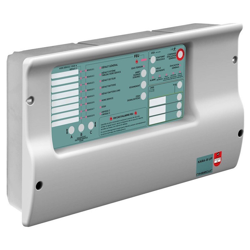 Centrale de détection incendie conventionnel NF 8 boucles avec 3 fonctions CMSI intégrées, conforme aux normes NF EN 54-2:1997+A1:2007, NF EN 54-4:1997+A1:2003+A2:2006.